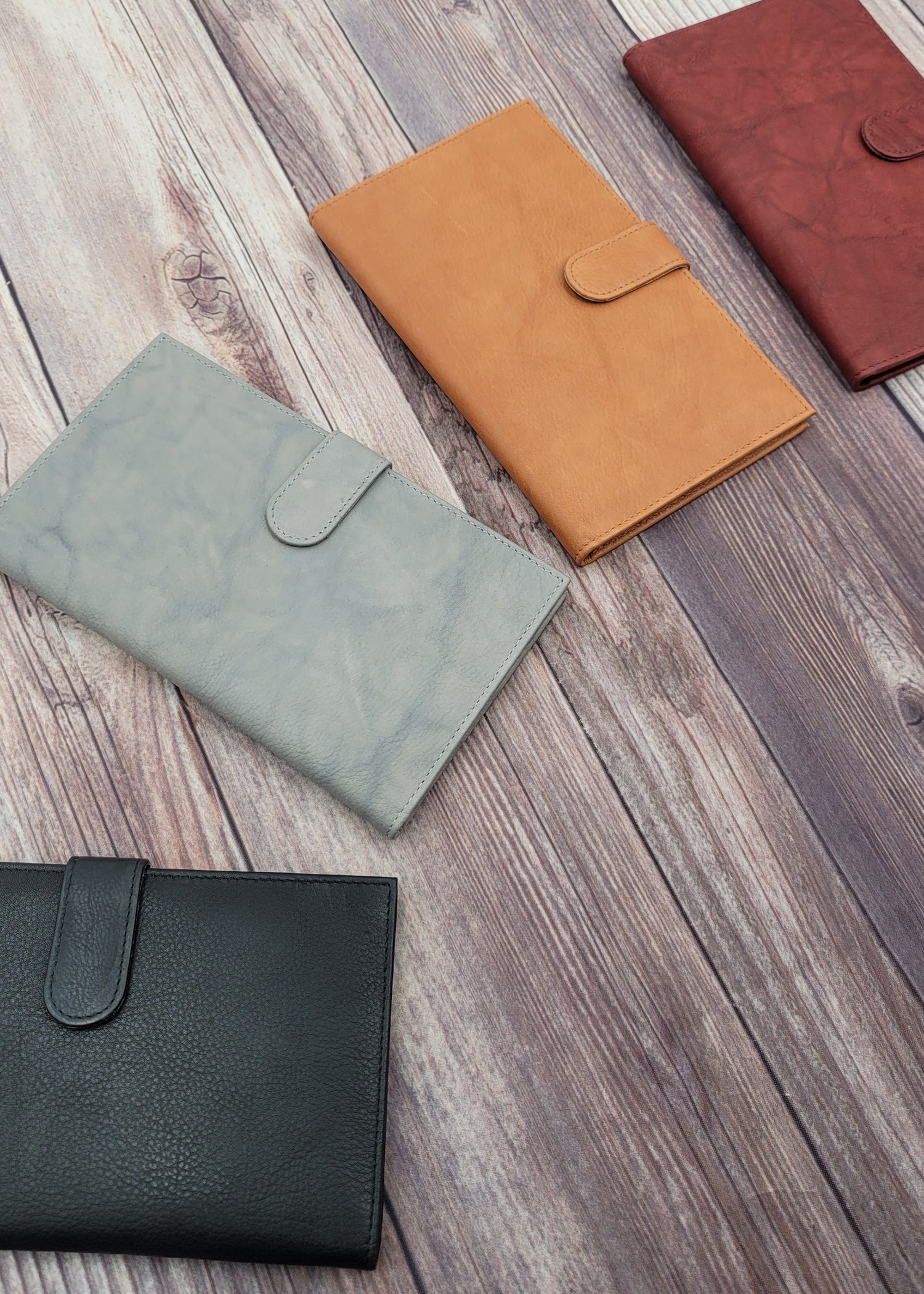 AG Wallets Cowhide RFID 20 Card Holder Long Wallet Snap Close - 6 pack