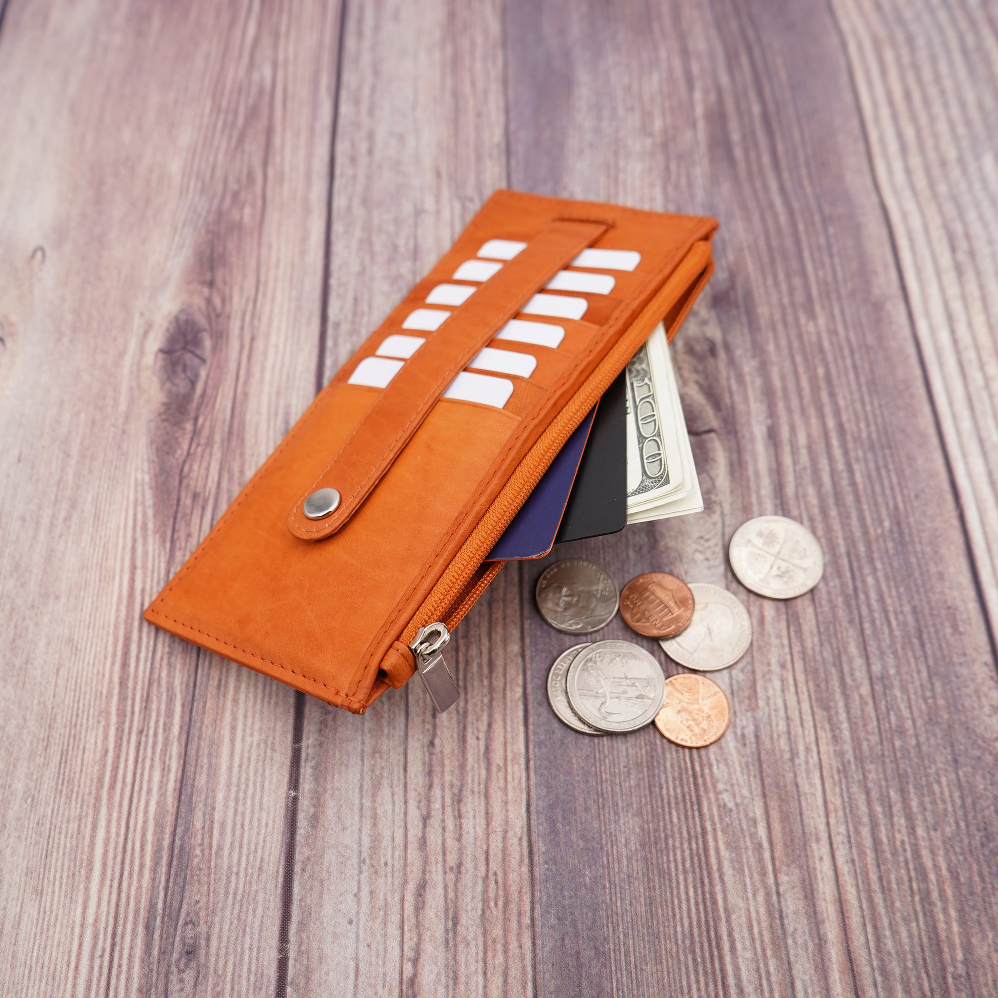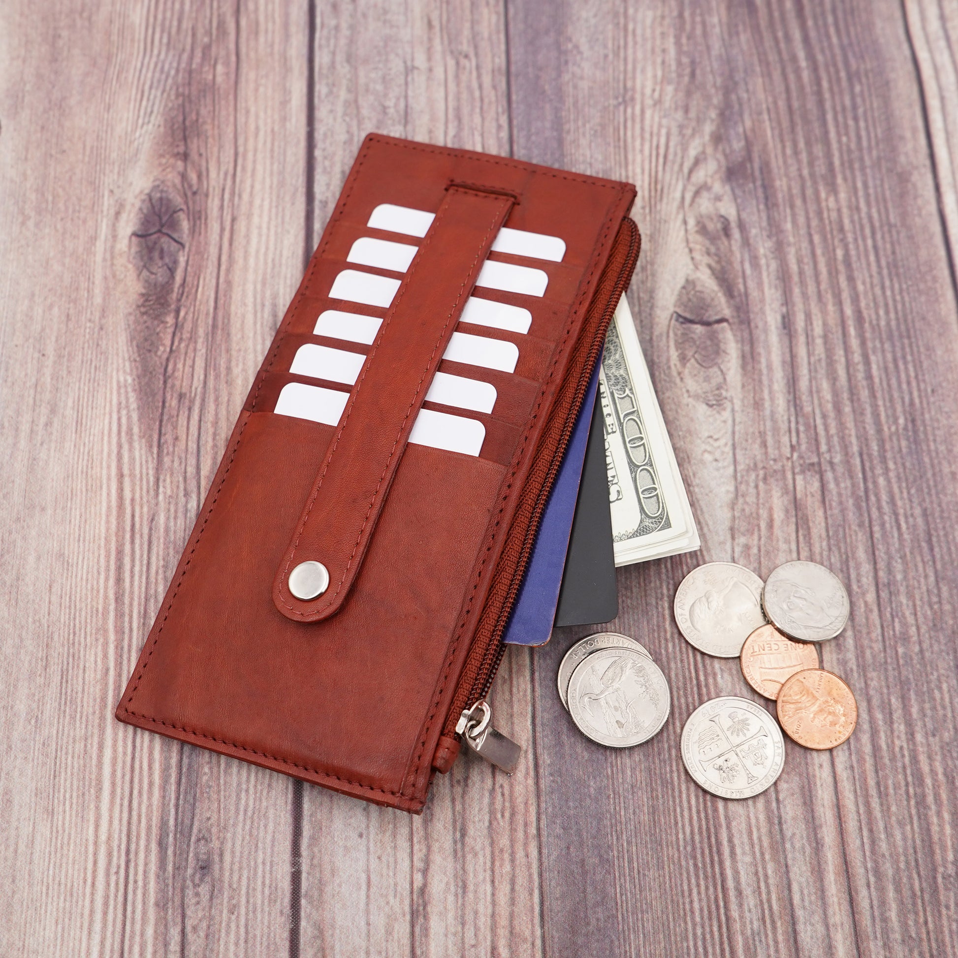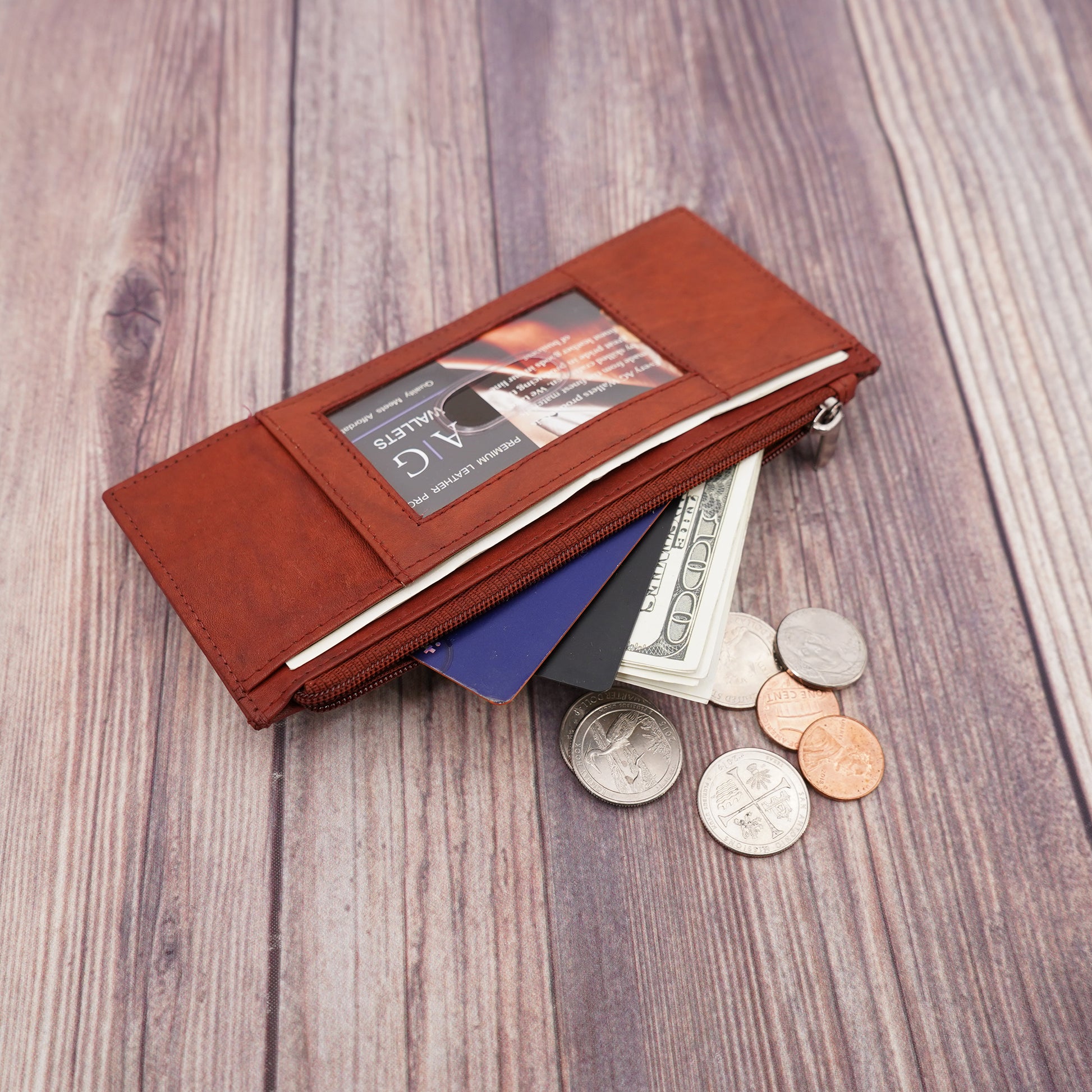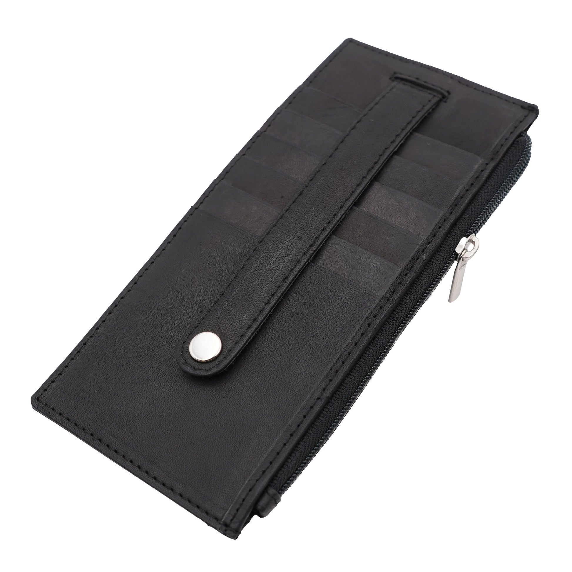 AG Wallets Women's Long Credit Card Holder With Side Zipper Pocket, Snap Close Black Cowhide Leather Wallet - 6 pack
