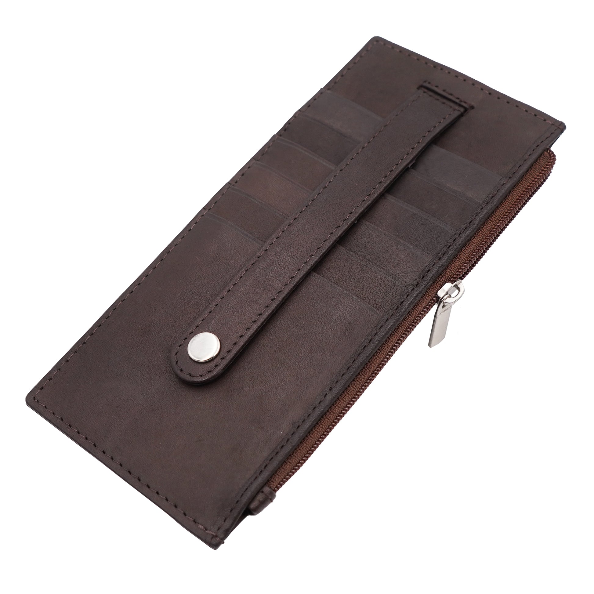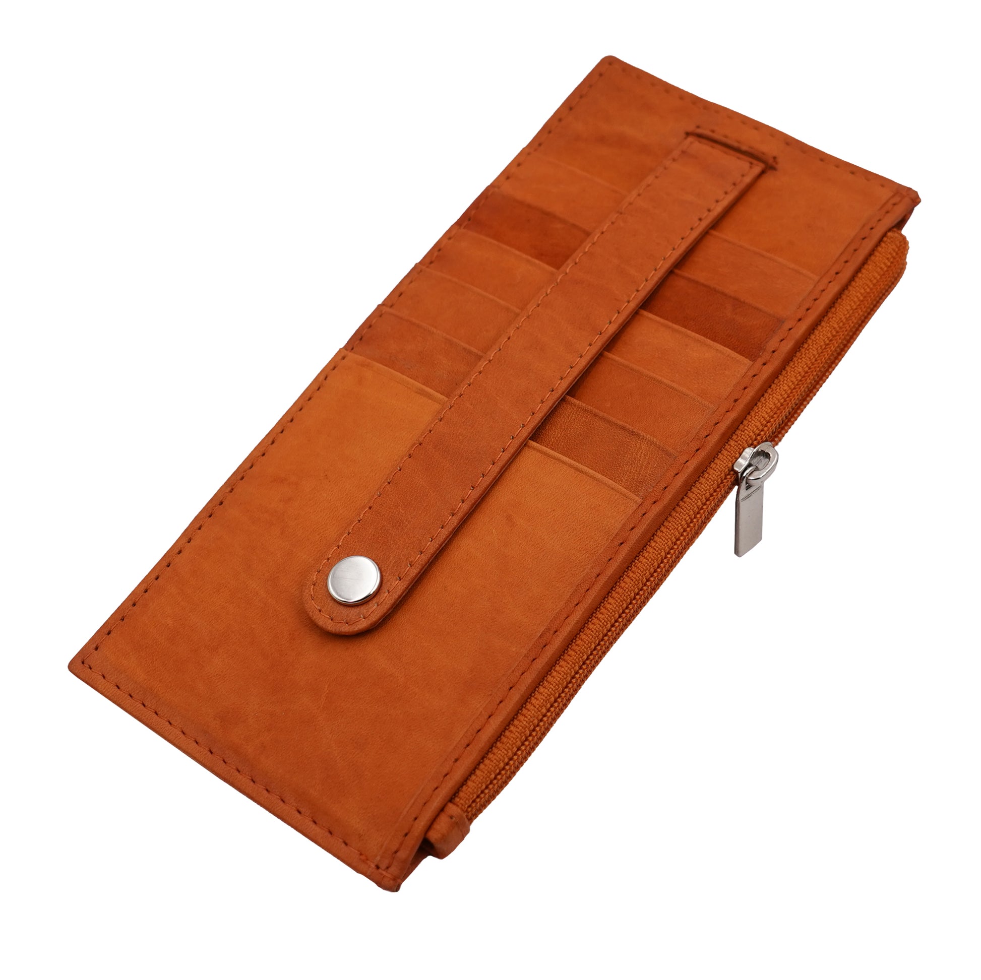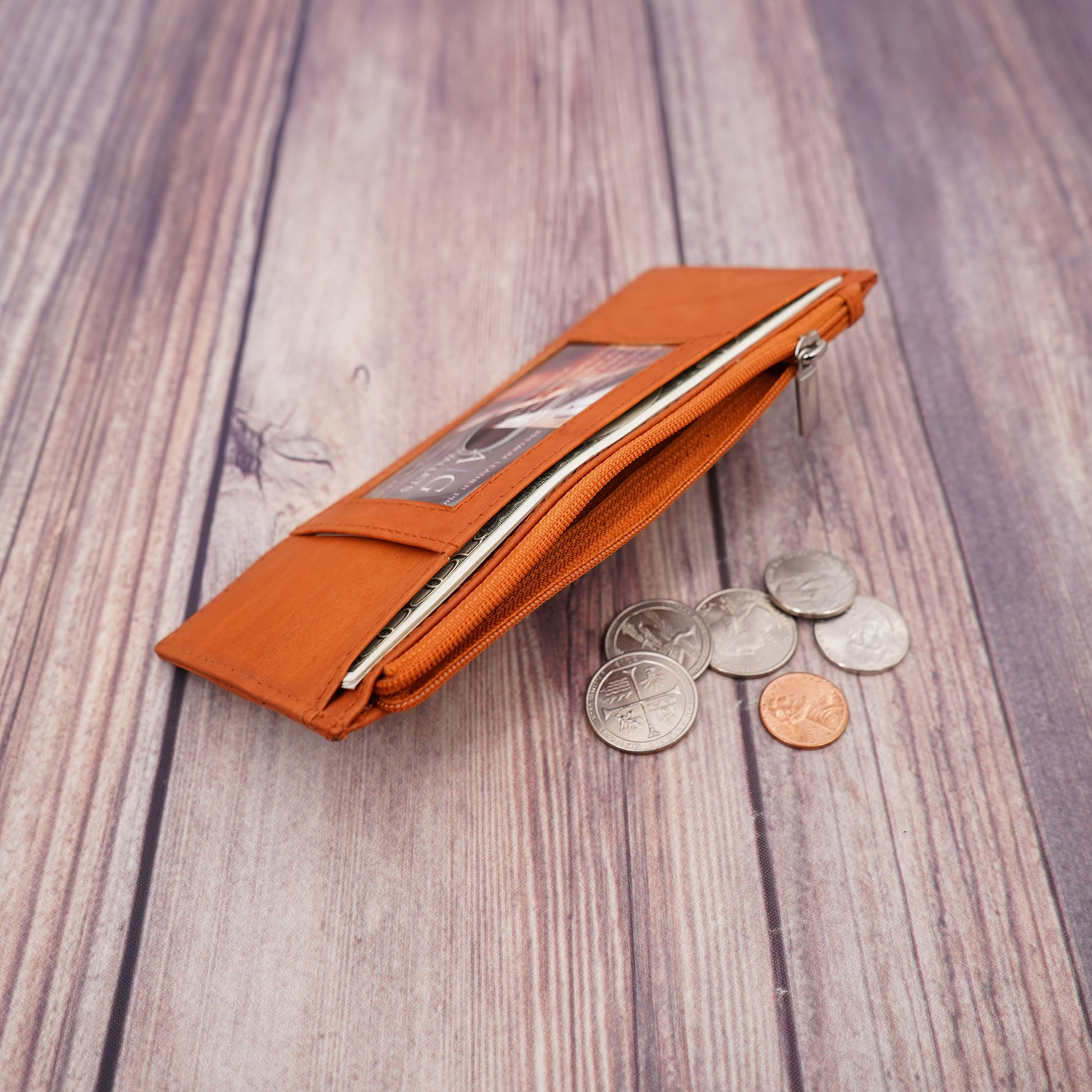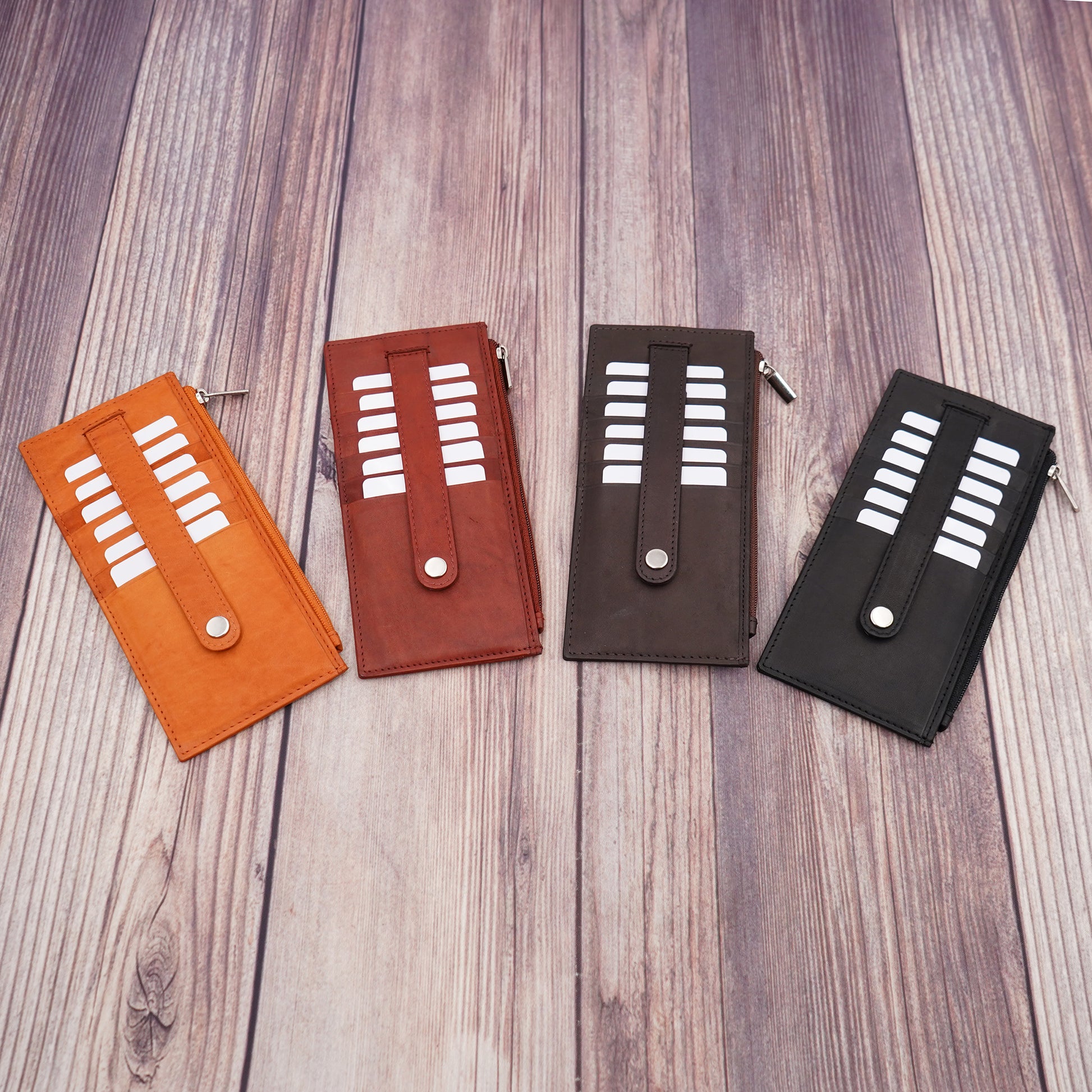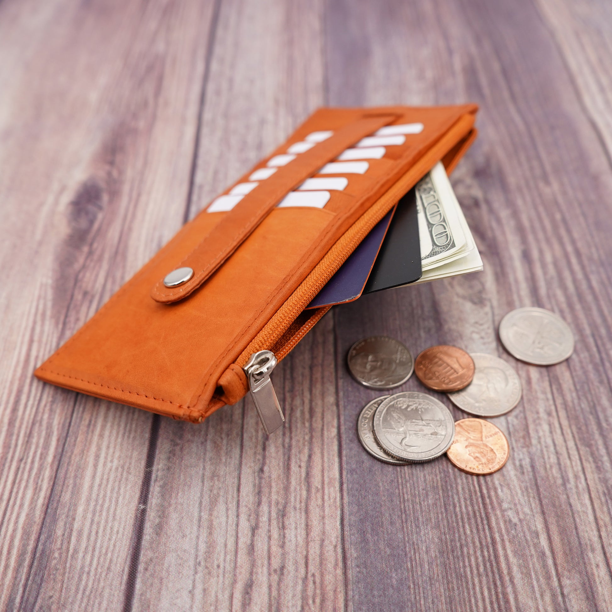 AG Wallets Women's Long Credit Card Holder With Side Zipper Pocket, Snap Close Black Cowhide Leather Wallet - 6 pack