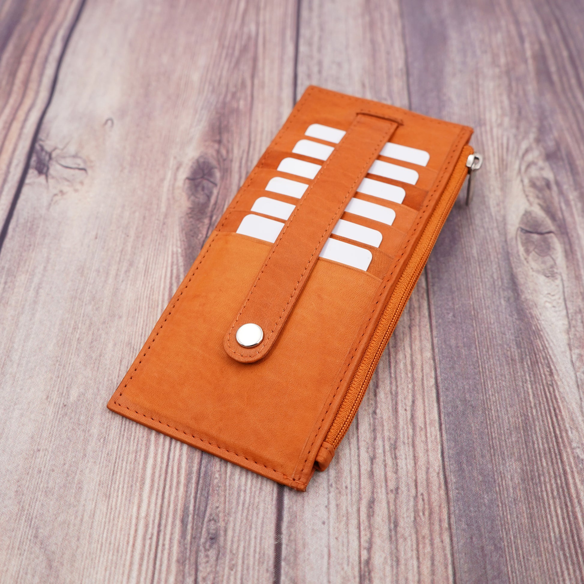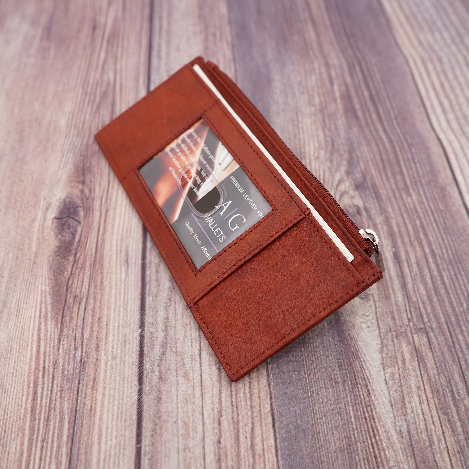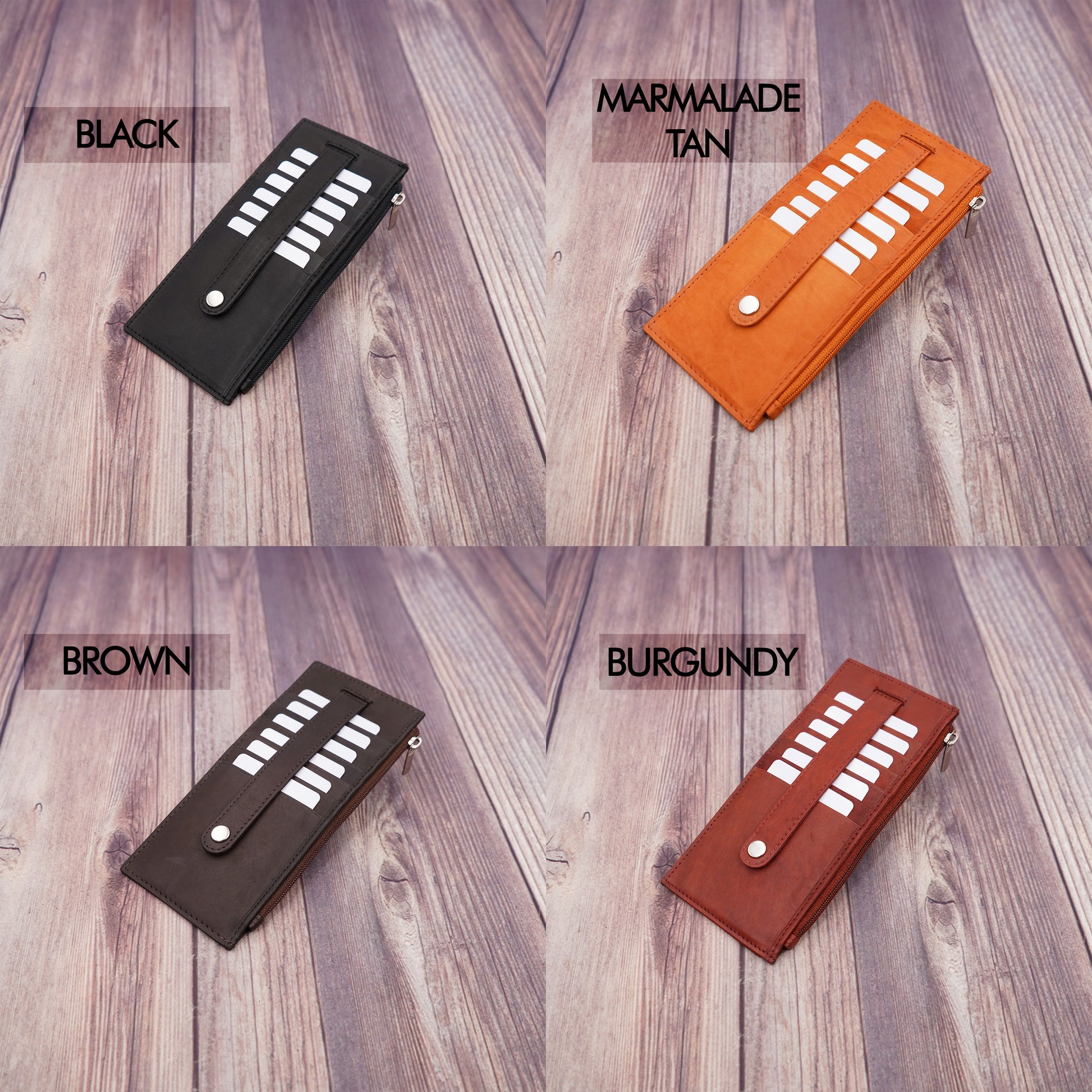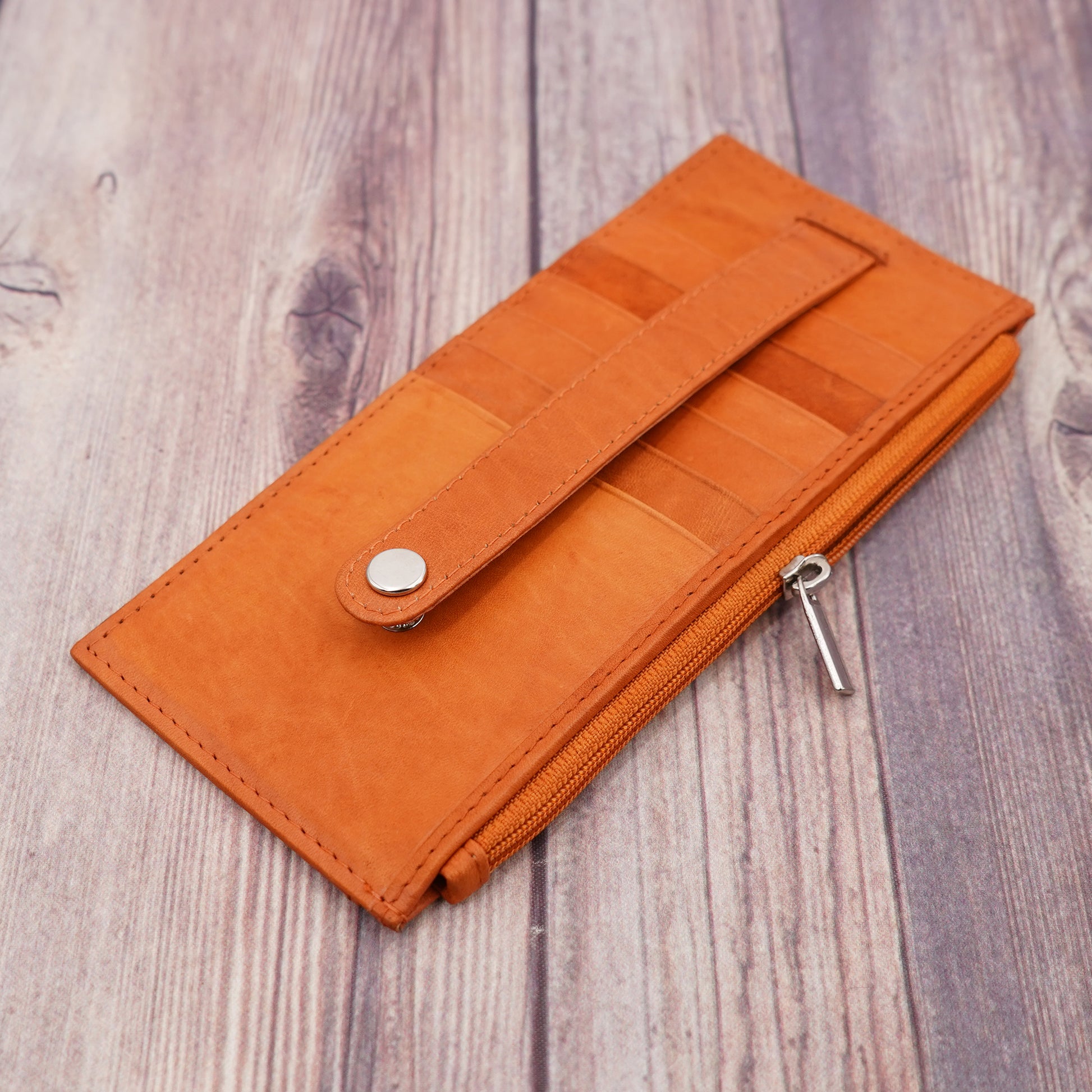 AG Wallets Women's Long Credit Card Holder With Side Zipper Pocket, Snap Close Black Cowhide Leather Wallet - 6 pack