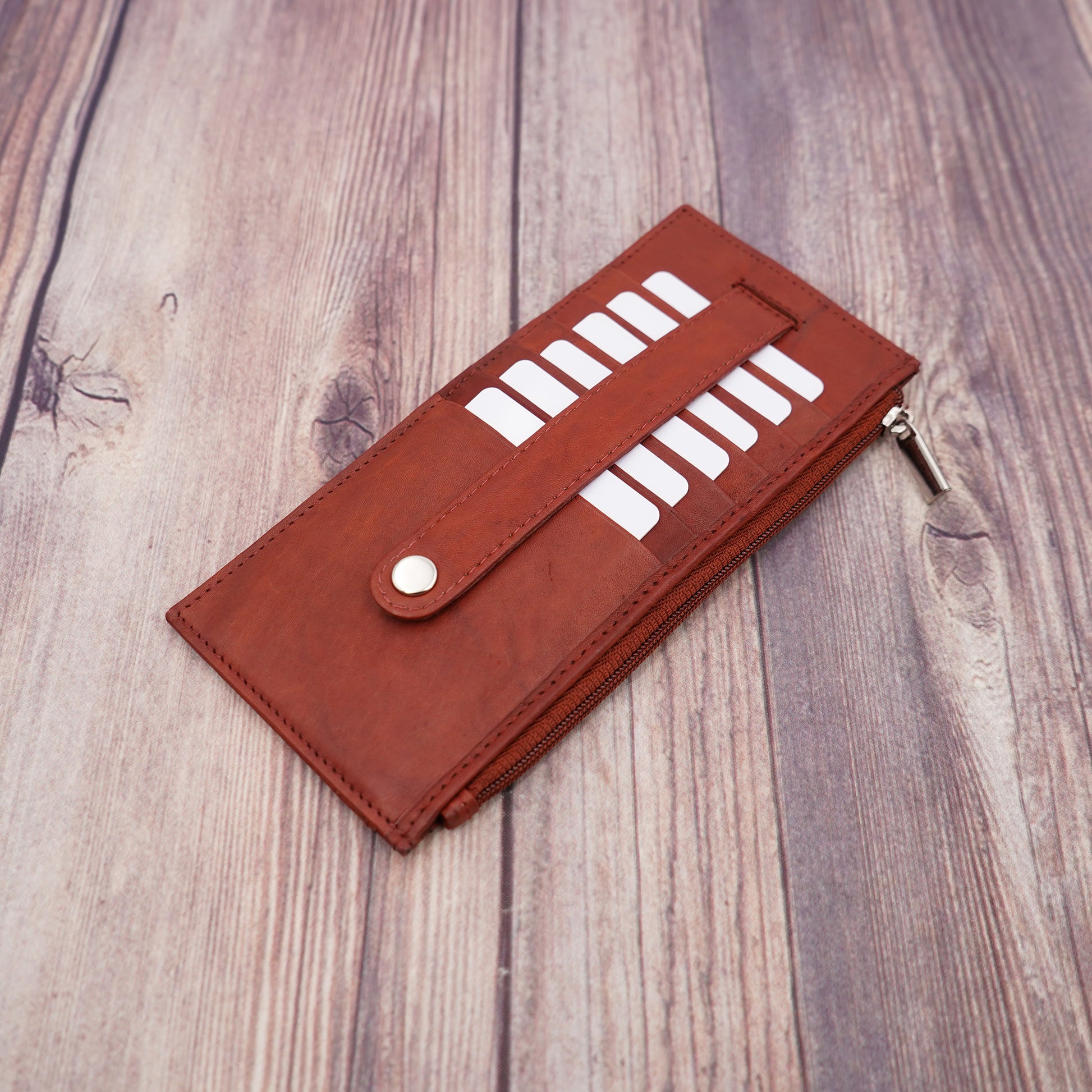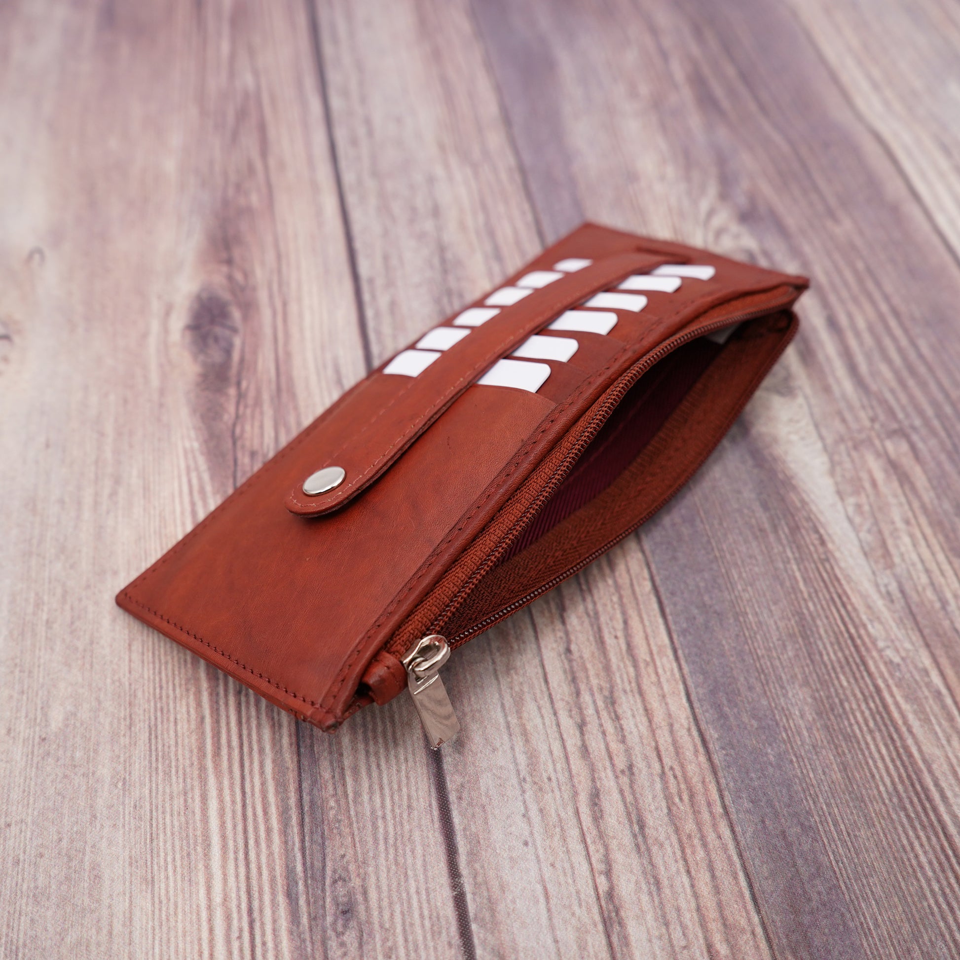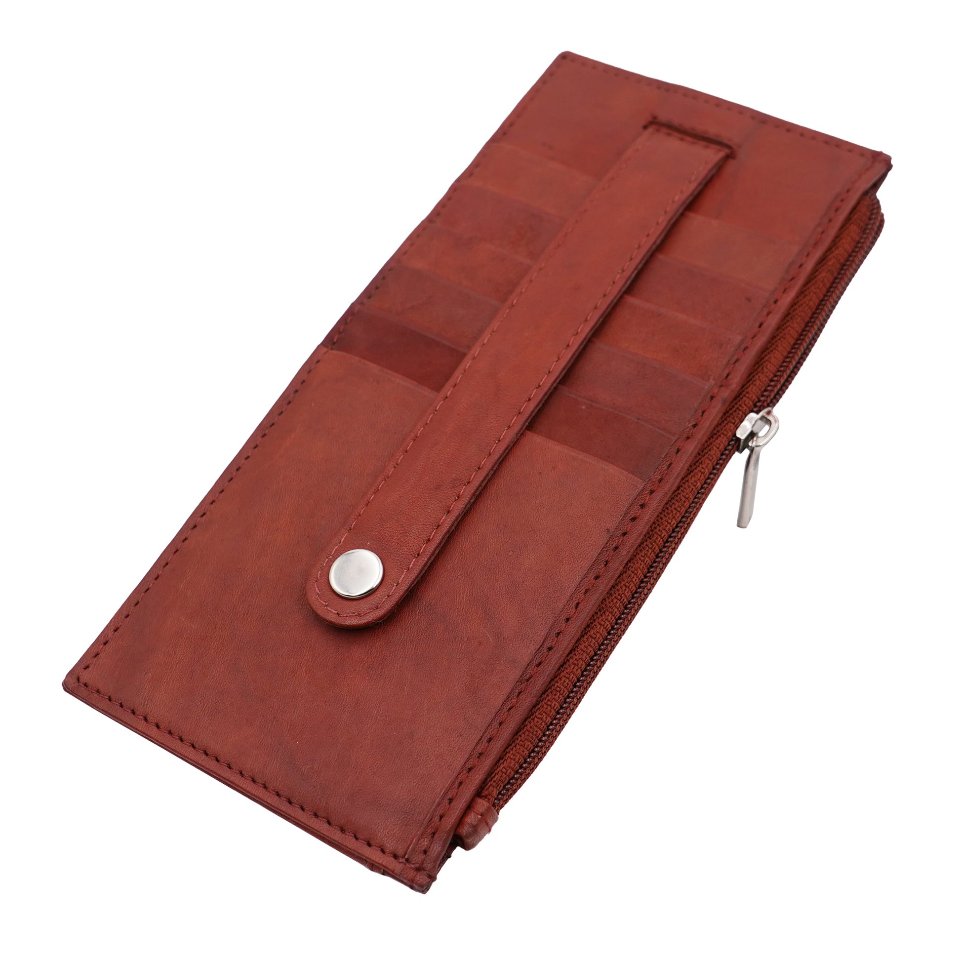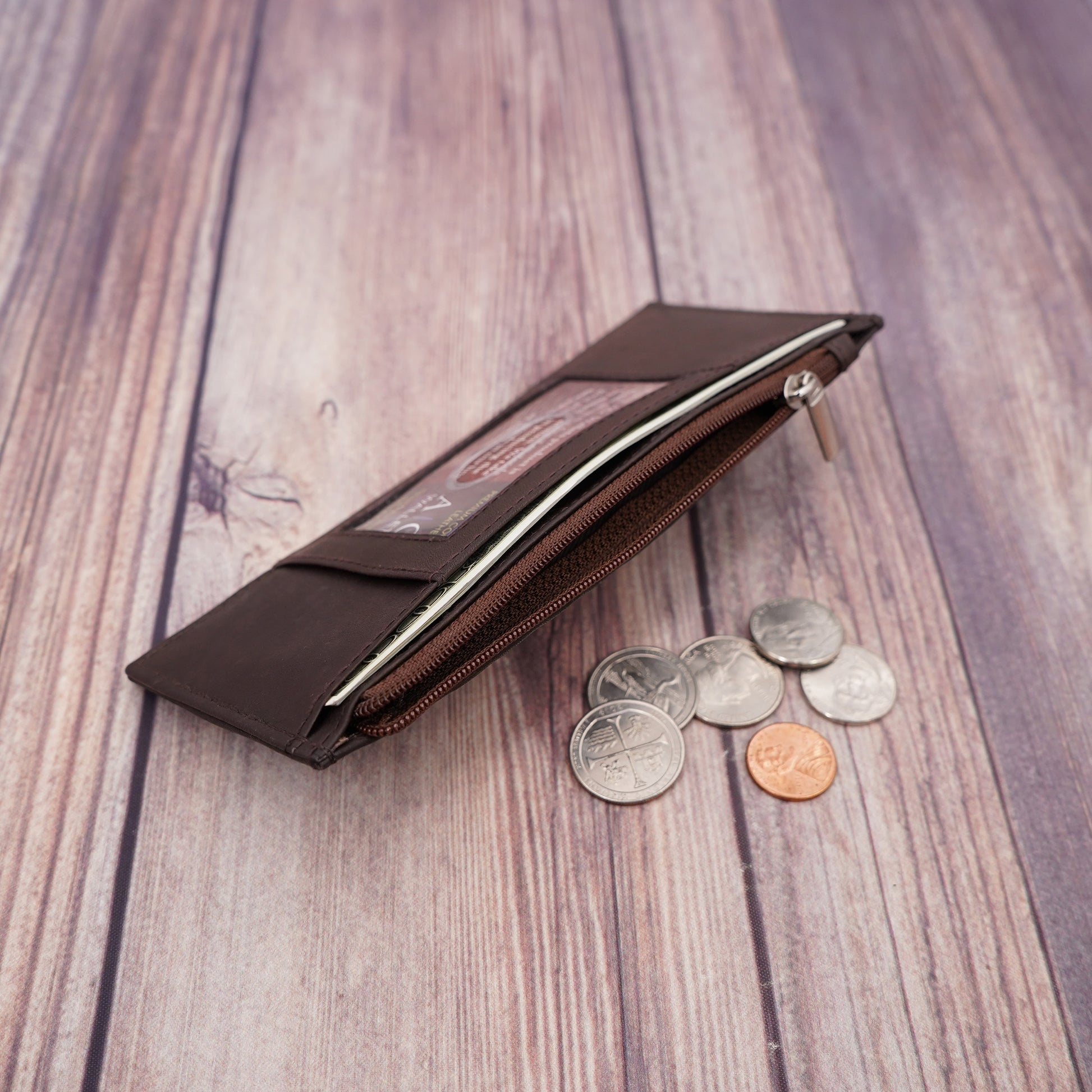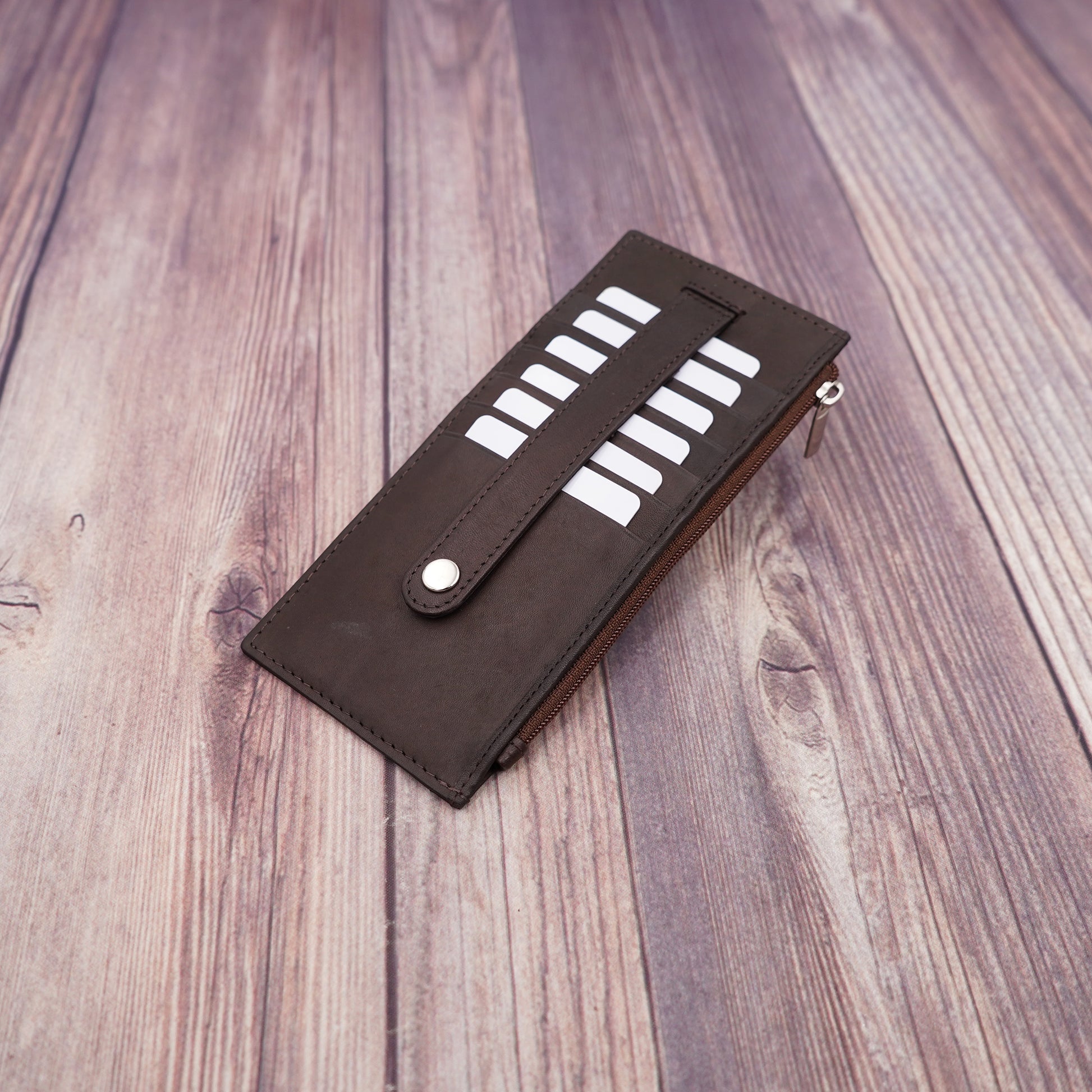 AG Wallets Women's Long Credit Card Holder With Side Zipper Pocket, Snap Close Black Cowhide Leather Wallet - 6 pack